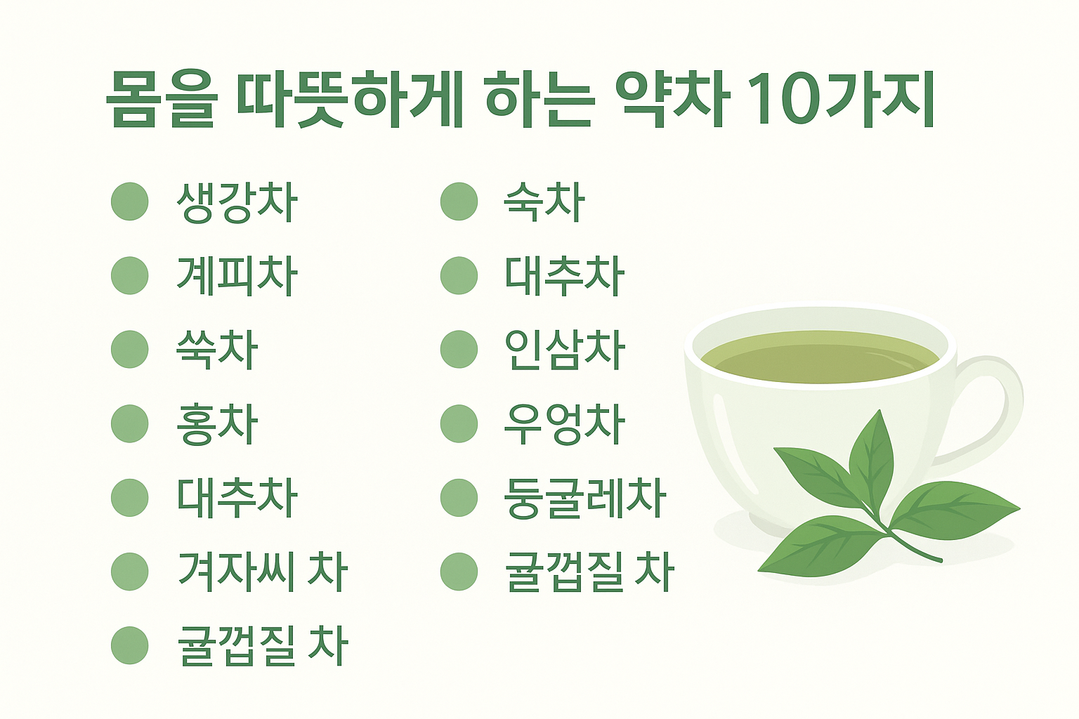 요즘처럼 쌀쌀한 날이나 몸이 으슬하게 느껴질 때 ‘따뜻한 차 한 잔’만으로도 마음이 든든해지는 경험 있으신가요? 단순한 음료를 넘어 건강을 더하는 ‘약차’로 따뜻함과 활력을 주는 한 잔, 어떠신가요. 오늘은 “몸을 따뜻하게 하는 약차 추천 리스트”라는 주제로 면역력 강화부터 혈액 순환, 피로 회복까지 도움 줄 수 있는 약차 7가지를 정리해 드리겠습니다. 하루 한 잔, 놓치지 말고 챙겨보세요!