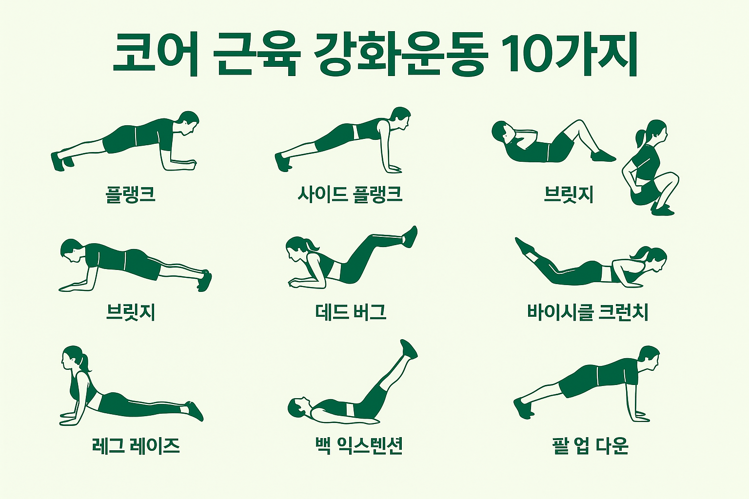 코어 근육 강화운동 10가지를 통해 체형이 달라지는 변화를 경험해보세요. 일상 속에서 쉽게 따라할 수 있는 동작들로, 강한 중심이 몸 전체 건강을 바꿀 수 있습니다.