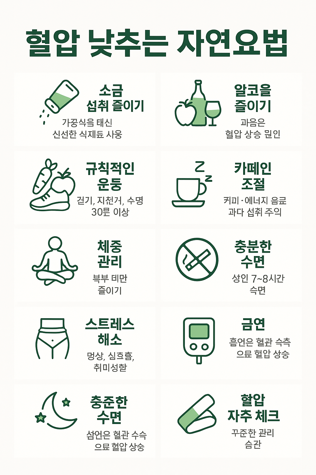혈압 낮추기 위한 자연요법을 알려드립니다. 약 없이도 실천할 수 있는 생활습관과 음식, 운동을 통해 건강한 혈압 관리를 시작해보세요.